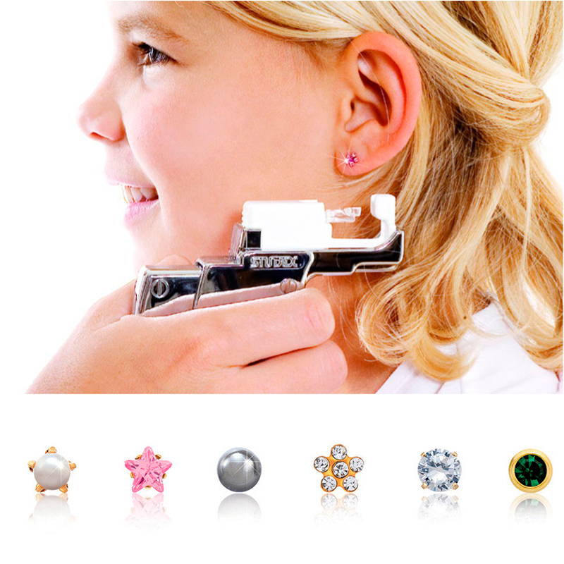 Это новая революционная технология бесшумного прокола ушей. Главной отличительной особенностью является бесшумность, что идеально подходит детям. система предполагает максимальную гигиеничность. Каждая серьга-игла упакована в отдельный стерильный картридж. Все части инструмента, находящиеся в контакте с кожным покровом одноразовые. Запатентованная технология обеспечивает максимально безболезненное проникновение серьги в ухо. Игловая часть серьги имеет диаметр 0.9мм и специальную заточку. Теперь ухо по настоящему прокалывается, а не простреливается. Таким образом, происходит не разрыв, а мягкое раздвигание тканей. Система Studex 75 соответствует всем гигиеническим нормам.